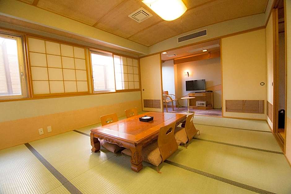 This family room offers a sauna. The family room provides air conditioning, tatami, as well as a shared bathroom featuring a bath and a shower. This family room features an electric kettle, heating and a flat-screen TV. The unit offers 2 futons.